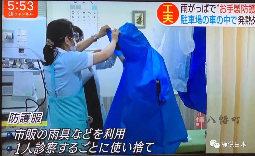 今天,朝日电视台播出一个新闻,一家名叫“松田诊疗所”的医院,为了给一位发烧四天的患者看病,在没有防护服的情况下,用超市里出售的雨衣当防护服。据说大阪的医院医生,用垃圾袋做防护服,给新型冠状病毒感染可疑患者看病。