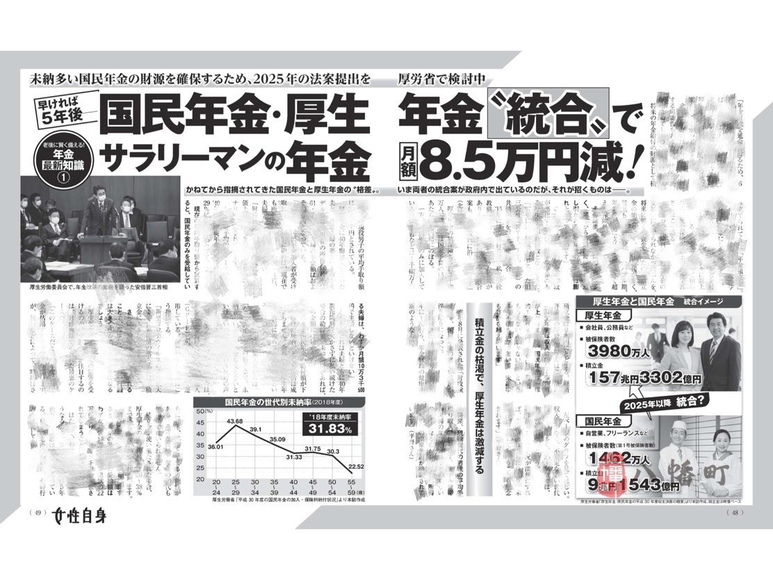 为什么会最快5年后厚生年金突然减额这么多呢?因为为了延续年金财政,有可能会将厚生年金与国民年金的積立金“统合”。